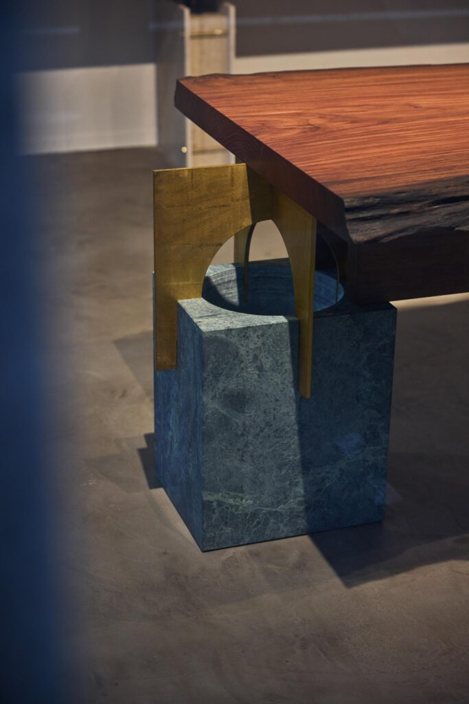 ディテールには建築物の構造形式を参考にしているとのことで、機能的には大きなテーブルですが、