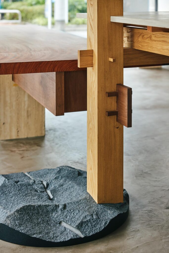 ちなみに冒頭で触れたこちらの什器ですが、橋本さんが淡路島出身ということもあり、石や木材などはほぼほぼ淡路島のものを使っており、