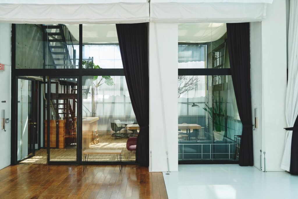 ちなみに開口部は、天窓部分を含め、カーテンで光量の調整が可能。メイクルームも併設しているので、撮影スタジオとしての機能は完璧です。